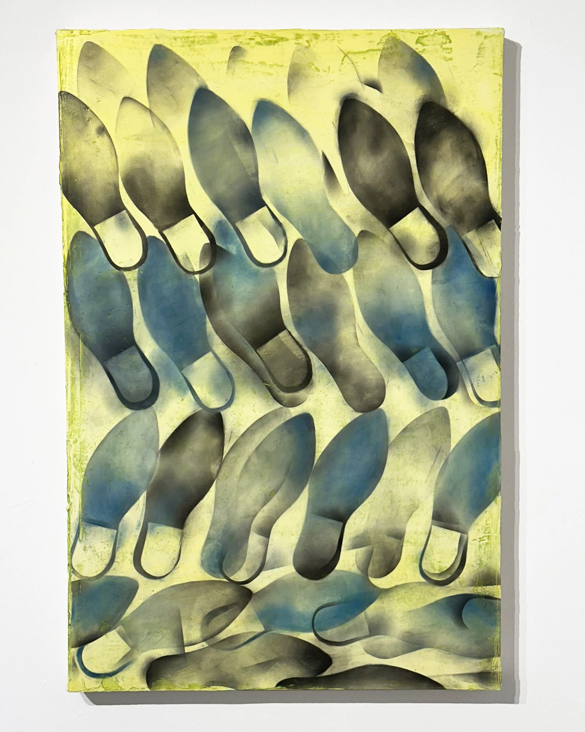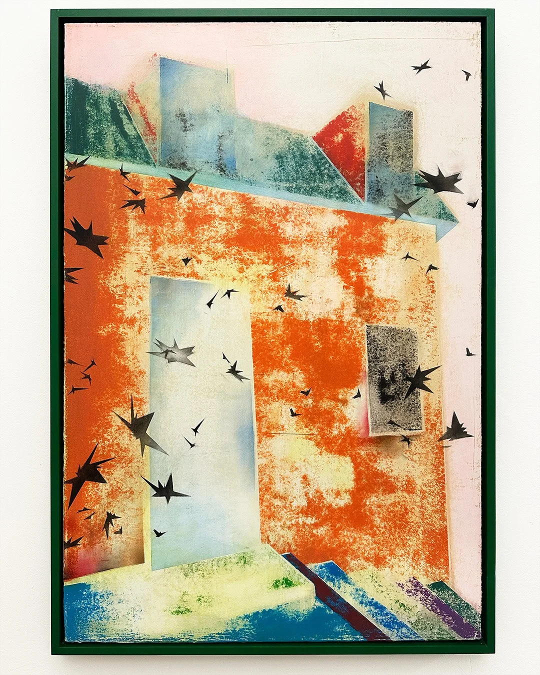 Pastel, acrylic and paper on canvas-wrapped wood panel